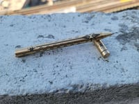 These are laser etched all brass pens with no moving parts, instead using screw top caps. Each is 1.3oz and custom designs are possible. Just contact us!